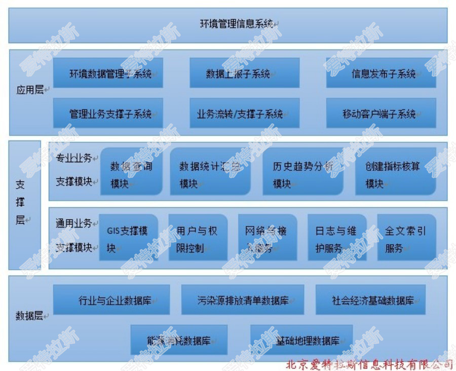 >> 采用B/S架構設計環(huán)境管理信息系統,以數據庫為基礎,實(shí)現企業(yè)數據服務(wù)管理,企業(yè)環(huán)境數據采集、處理與統計匯總,企業(yè)上報數據審核、查詢(xún)、統計、展示的功能;