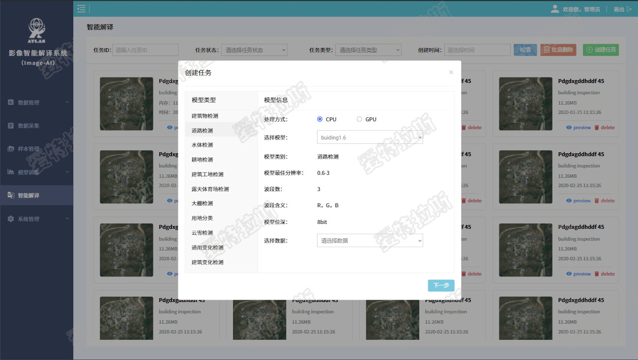 3)平臺內置的數據倉庫,能夠管理無(wú)限多的遙感影像數據、結構化地理信息矢量數據、以及用這些數據生成的深度學(xué)習算法樣本數據。