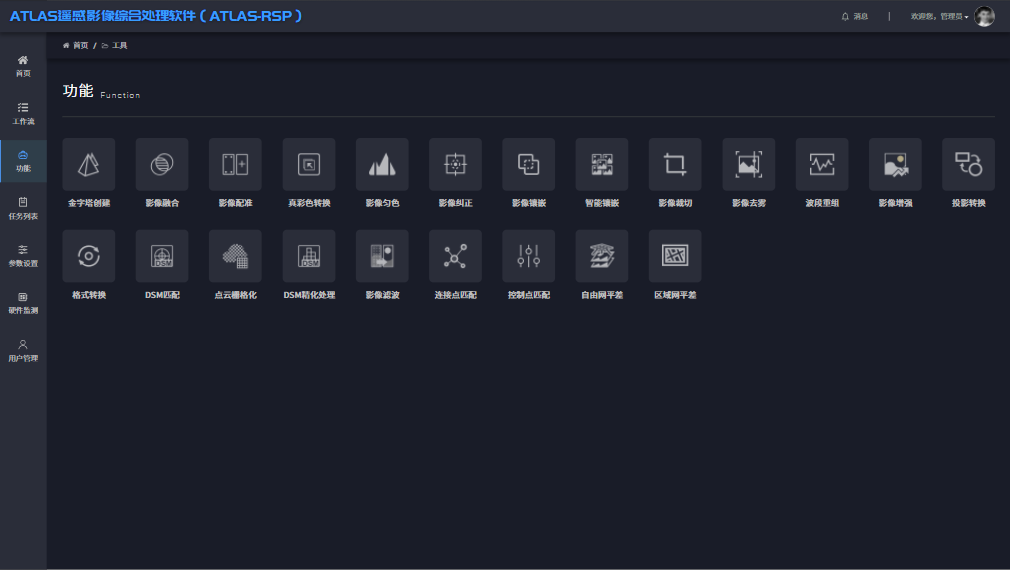 系統提供影像云檢、配準糾正、影像融合、真彩色轉換、勻色鑲嵌、裁切輸出、DSM自動(dòng)生成等常用算法模塊。