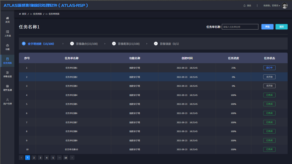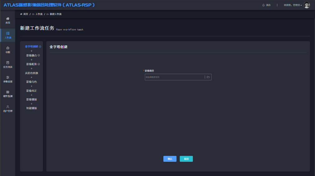 影像處理業(yè)務(wù)流支持從原始影像到鑲嵌成果全流程自動(dòng)處理,流程操作簡(jiǎn)單,數據及參數配置完成后,一鍵提交后臺執行,可隨時(shí)查看流程進(jìn)度。此外,影像處理業(yè)務(wù)流中計算節點(diǎn)可以由用戶(hù)根據生產(chǎn)需要進(jìn)行定制,用戶(hù)可以選擇生產(chǎn)中需要的計算節點(diǎn)進(jìn)行數據處理;同時(shí)影像處理業(yè)務(wù)流具備斷點(diǎn)續做能力,系統自動(dòng)跳過(guò)之前處理后的計算過(guò)程,從而使數據生產(chǎn)更加方便快捷。