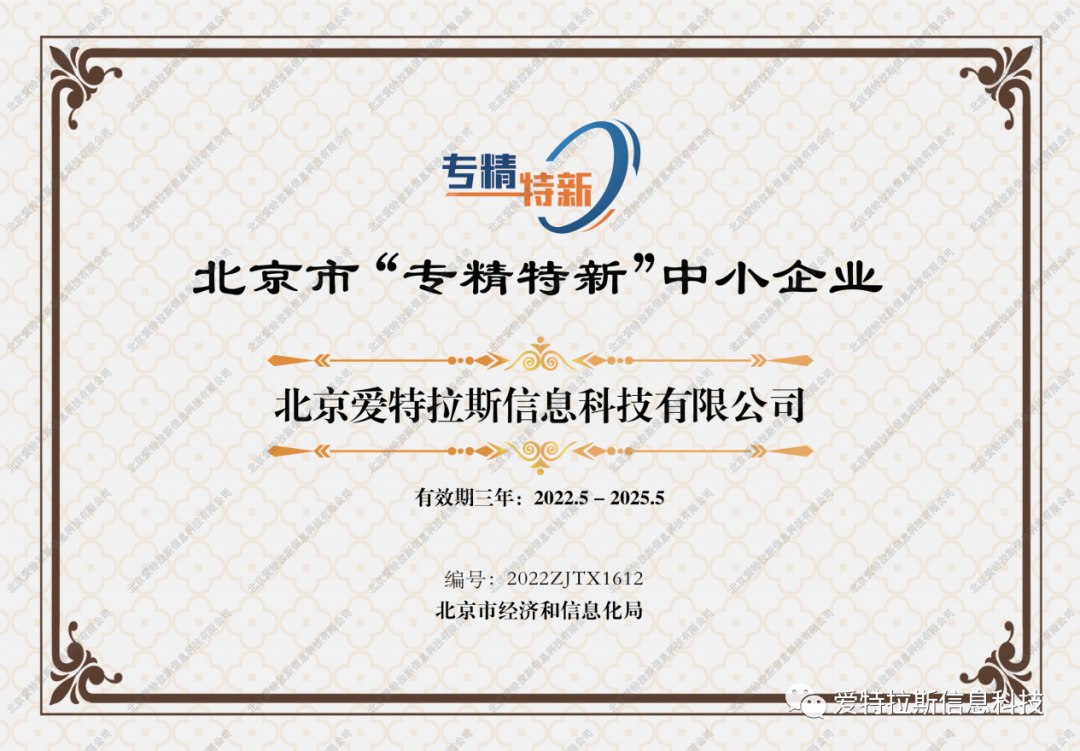 2022年度ATLAS資質(zhì)榮譽(yù)——恭賀愛(ài)特拉斯入選北京市“專(zhuān)精特新”企業(yè)名單!